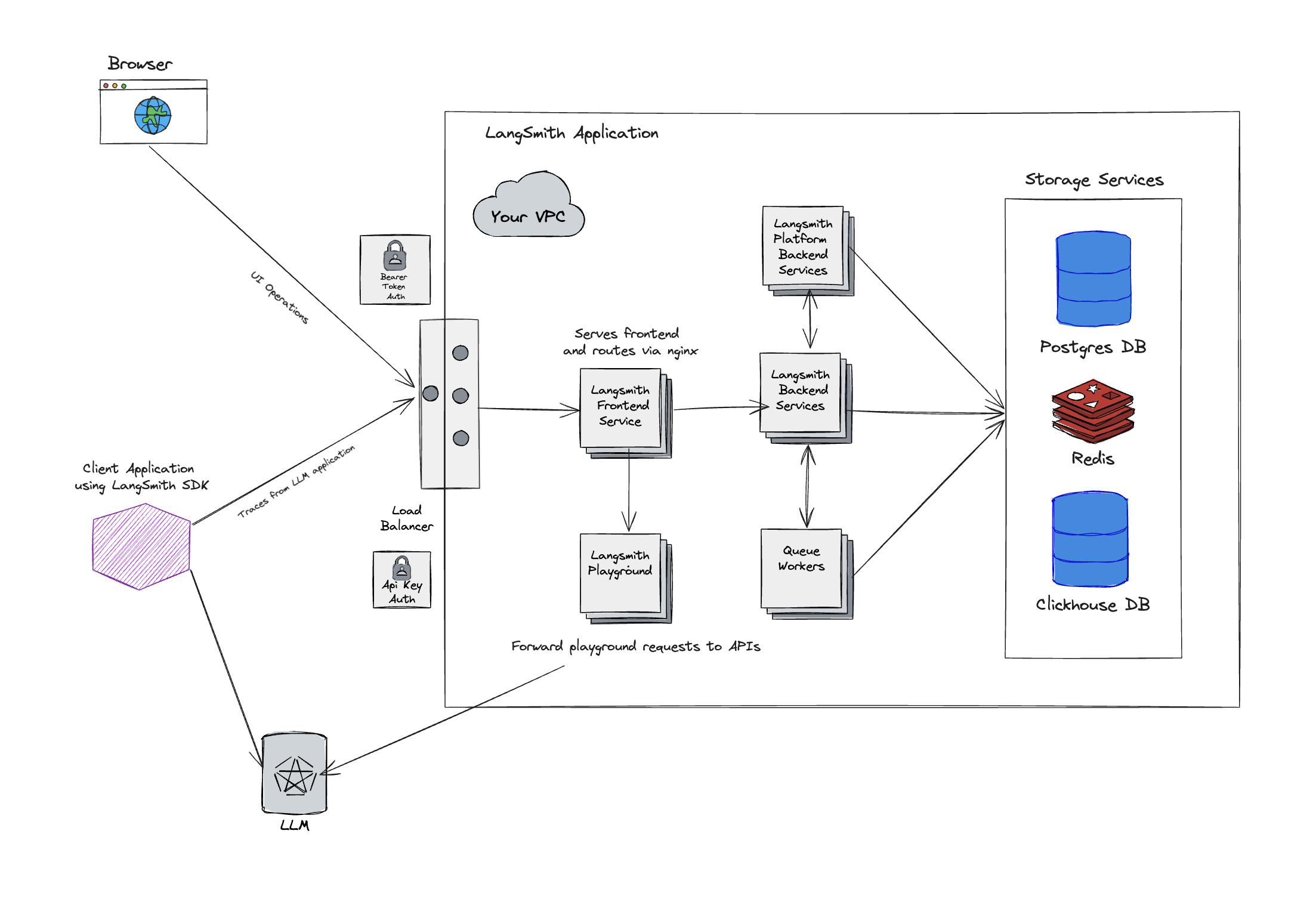 LangSmith can be run via Kubernetes (recommended) or Docker in a Cloud environment that you control.
